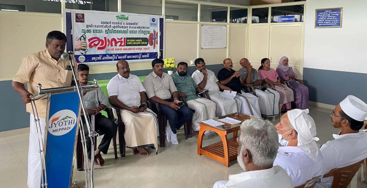 മേപ്പാടി: മലബാർ ഗോൾഡ് & ഡയമണ്ട്സും ഇഖ്റ ഹോസ്പിറ്റലും സംയുക്തമായി ജ്യോതി പാലിയേറ്റീവ് കെയർ സൊസൈറ്റിയുടെ സഹകരണത്തോടെ നടത്തിയ വൃക്കരോഗ ജീവിതശൈലി രോഗനിർണ്ണയ ക്യാമ്പ് മേപ്പാടി ഗ്രാമപഞ്ചായത്ത് വികസനകാര്യ സ്ഥിര സമിതി അംഗം ബി. നാസർ ഉദ്ഘാടനം ചെയ്തു. വർധിച്ചു വരുന്ന വൃക്ക രോഗത്തിനും ജീവിതശൈലി രോഗത്തിനും തടയിടുക എന്ന ലക്ഷ്യത്തോടെയാണ് രോഗ നിർണയ ക്യാമ്പ് ജ്യോതി തണൽ ഡയാലിസിസ് സെന്ററിൽ സംഘടിപ്പിച്ചത്. 150 ൽ അധികം ആളുകൾ ക്യാമ്പിൽ പങ്കെടുത്തു.