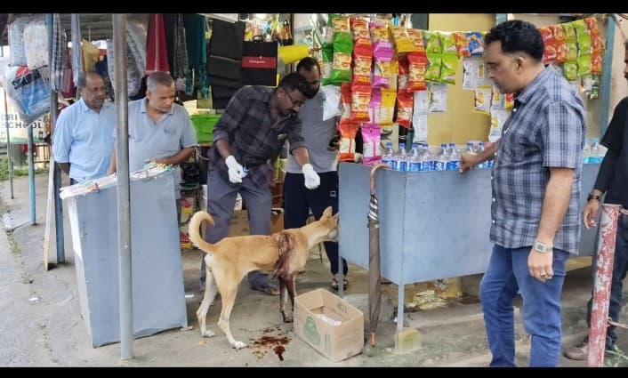 കൽപ്പറ്റ: കൈനാട്ടിയിൽ ശരീരത്തിൽ കേബിൾ കുടുങ്ങി അവശനിലയിലായ തെരുവ് നായയെ രക്ഷപ്പെടുത്തി . കേബിൾ കുടുങ്ങി മുറിവ് വ്രണമായതോടെ ഒരാഴ്ചയിലേറെയായി ഭക്ഷണവും വെള്ളവുമില്ലാതെ അവശതയിലായിരുന്നു. പ്രദേശത്ത് ലോട്ടറി കച്ചവടം നടത്തുന്ന മോഹനൻ എന്നയാളും ചേർന്നാണ് സന്നദ്ധ പ്രവർത്തകൻ അബു താഹിർ രക്ഷാ പ്രവർത്തനം നടത്തിയത്.നാട്ടുകാർ വിവരമറിയിച്ചതിനെ തുടർന്നാണ് അബു താഹിർ സ്ഥലത്തെത്തിയത്. മുറിവുണങ്ങാൻ മരുന്നും ചെയ്താണ് പിണങ്ങോട് സ്വദേശിയായ അബുതാഹിറും സുഹൃത്തുക്കളായ വി.കെ.റെയ്സ് ,സാബിത് എന്നിവരും മടങ്ങിയത്.